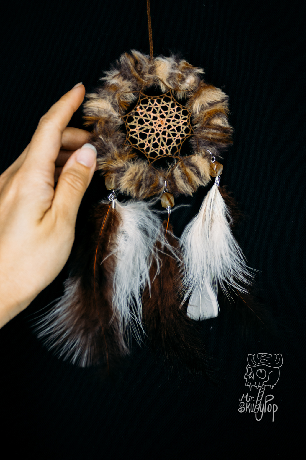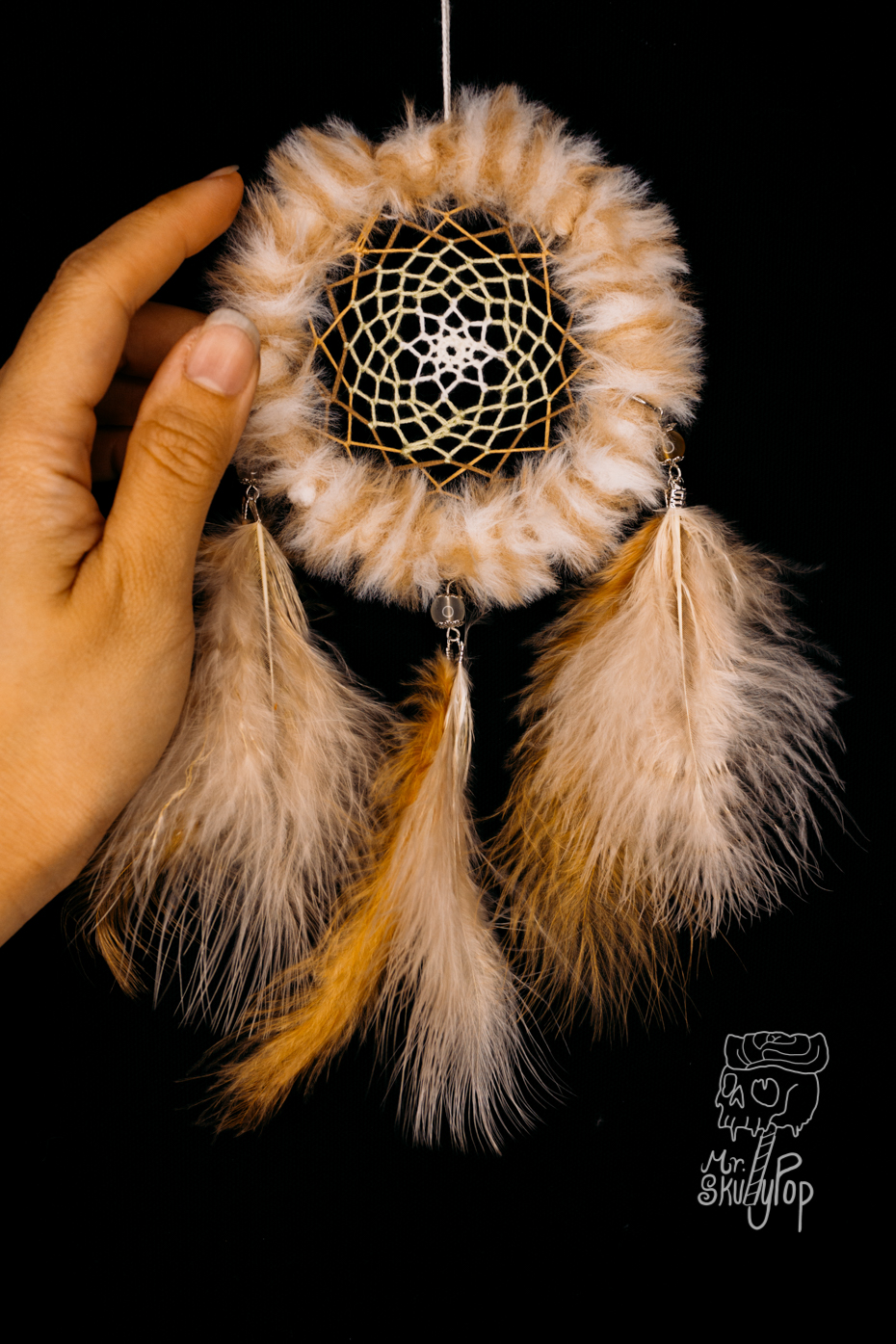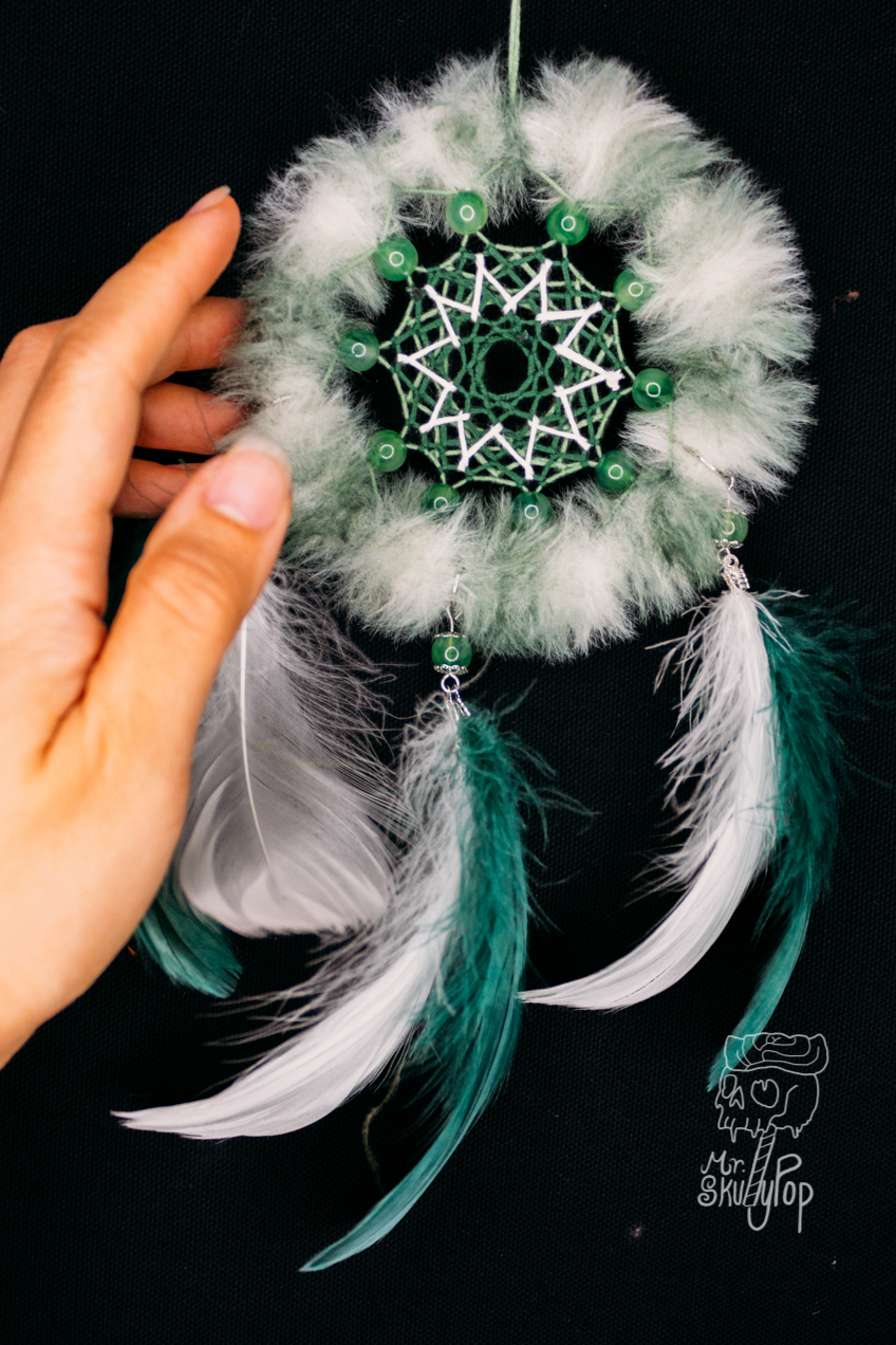 The Ojibwa (Chippewa) believe the night is full of both good and bad dreams. When a dream catcher is hung above where you sleep, it moves freely in the night air, catching the dreams as they drift by. The good dreams, knowing their way, pass through the opening in the center of the webbing, while the bad dreams, not knowing the way, are caught in the webbing and destroyed at the first light of the morning sun.